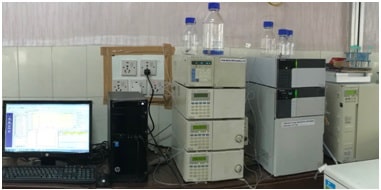 HPLC instrument generally constitute of autosampler, pumps, and a detector. The autosampler injects specific volume of sample mixture into the mobile phase stream which carries it into the column. The pumps deliver the desired flow (isocratic or gradient) of the mobile phase through the column. The detector generates a signal proportional to the amount of sample component emerging from the column, hence allowing for quantitative analysis of the sample components. A digital microprocessor (Communication Bus Module) and user software (LC Solution) control the HPLC instrument and provide data analysis.