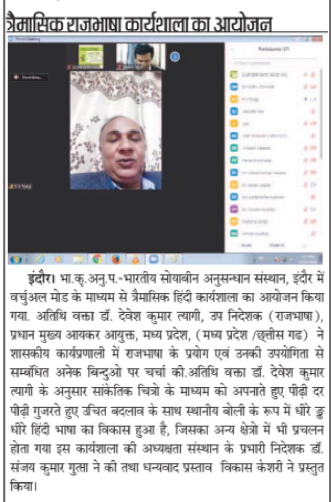 त्रैमासिक राजभाषा कार्यशाला २०२०