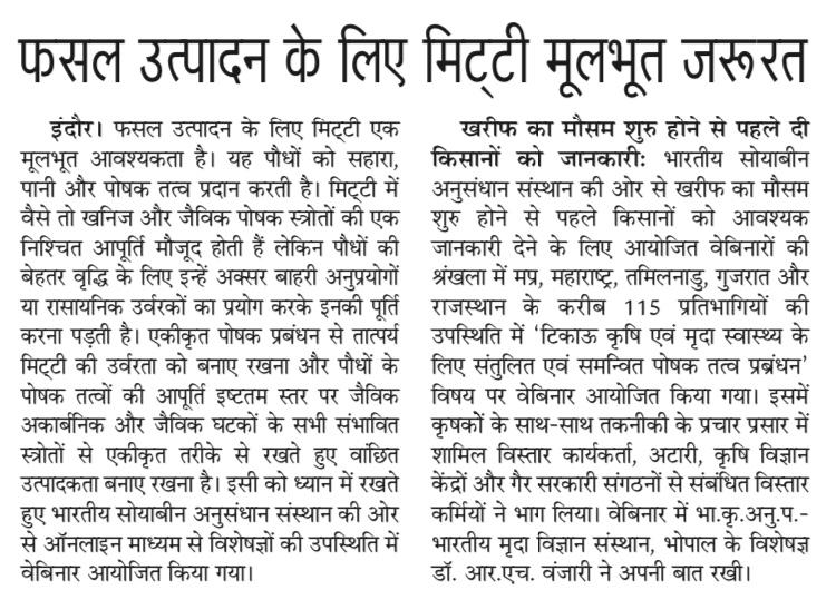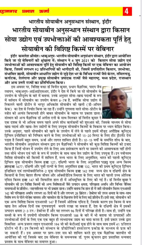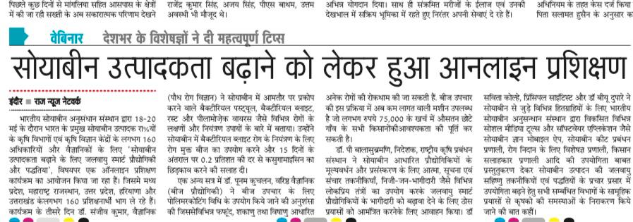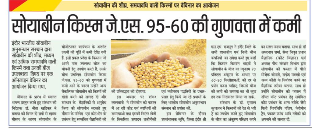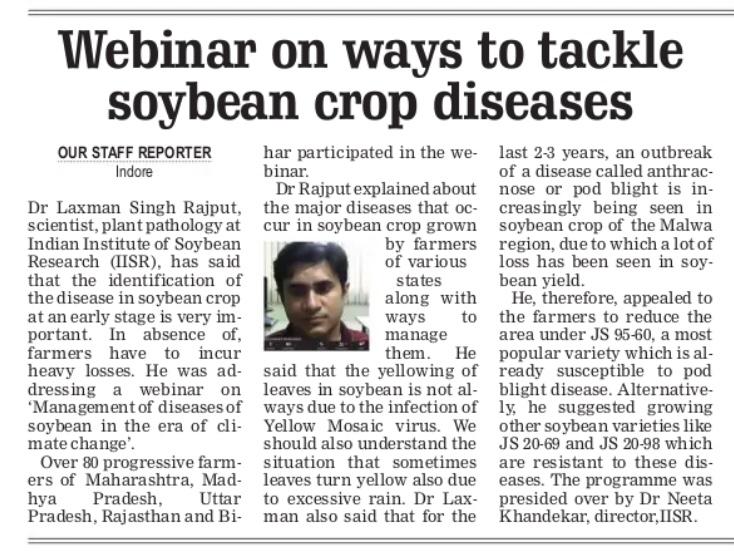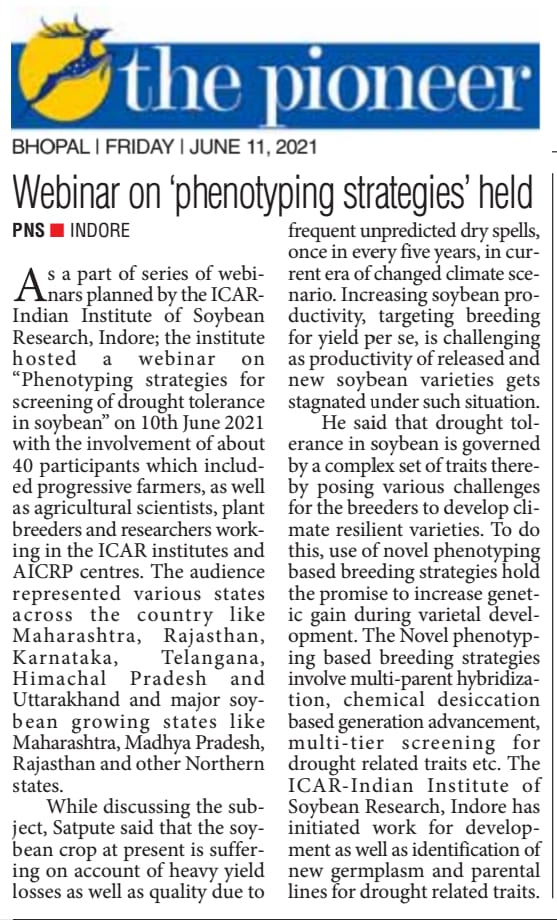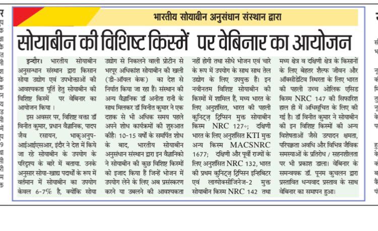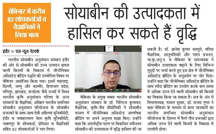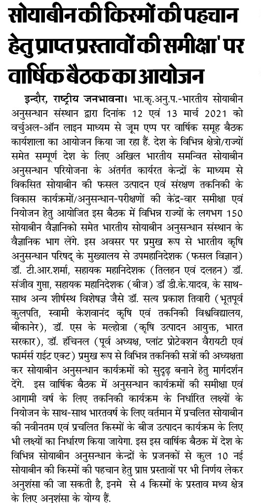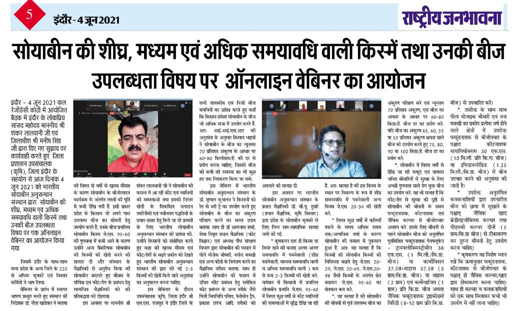 वेबिनार 31 मई 2021 "सोयाबीन की उच्च उत्पादन