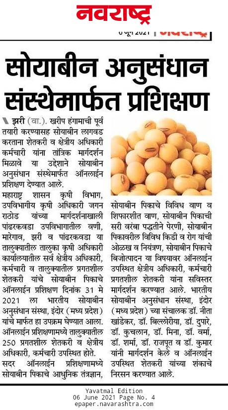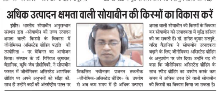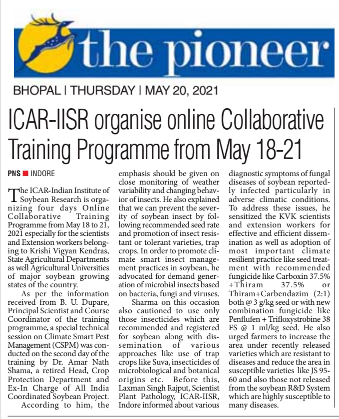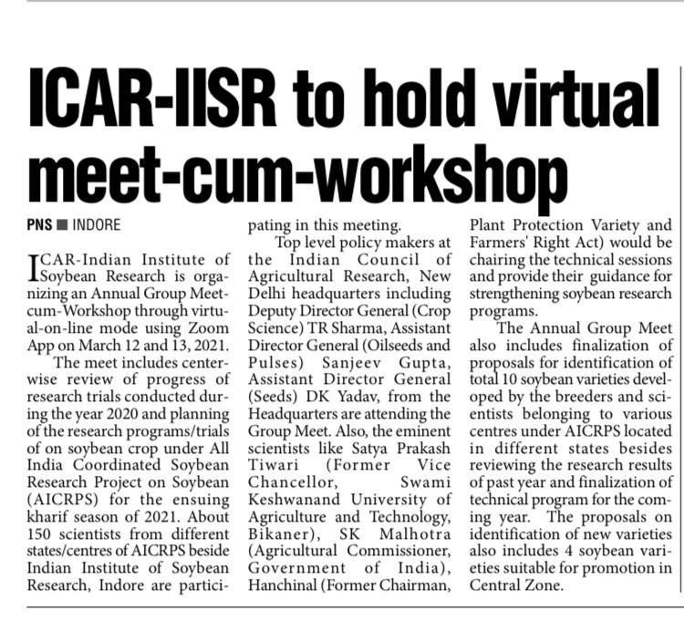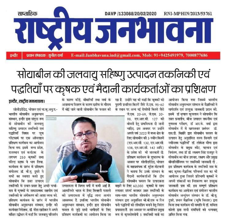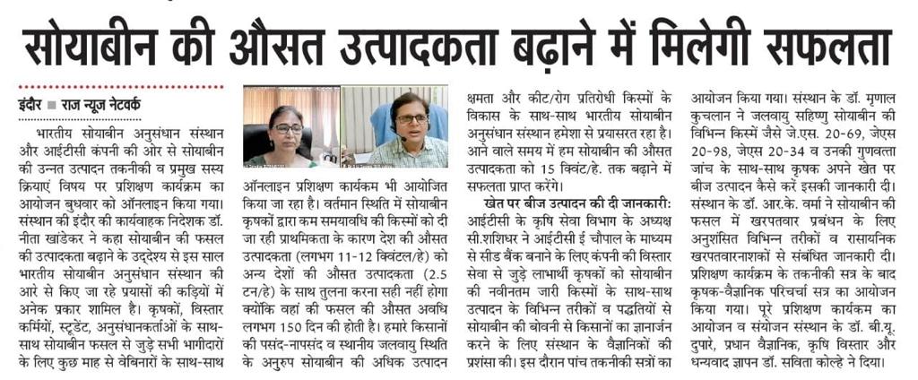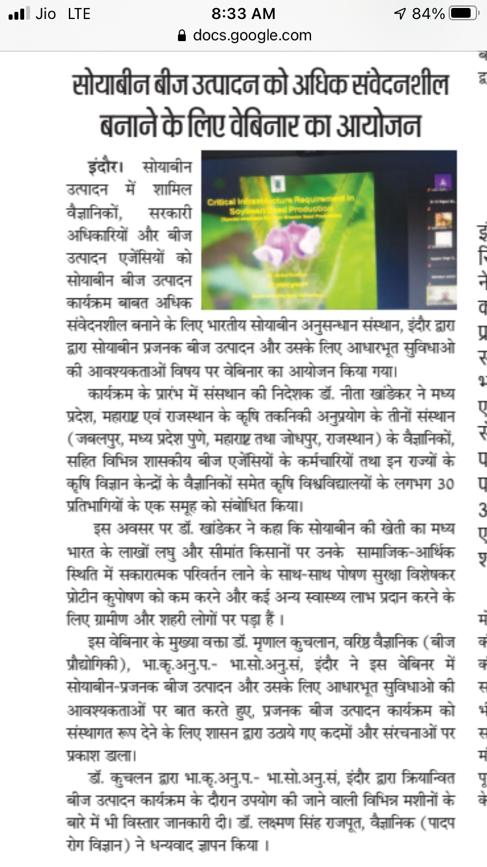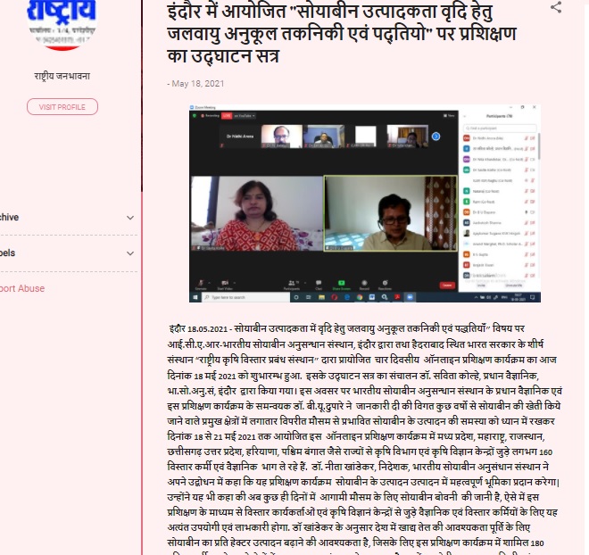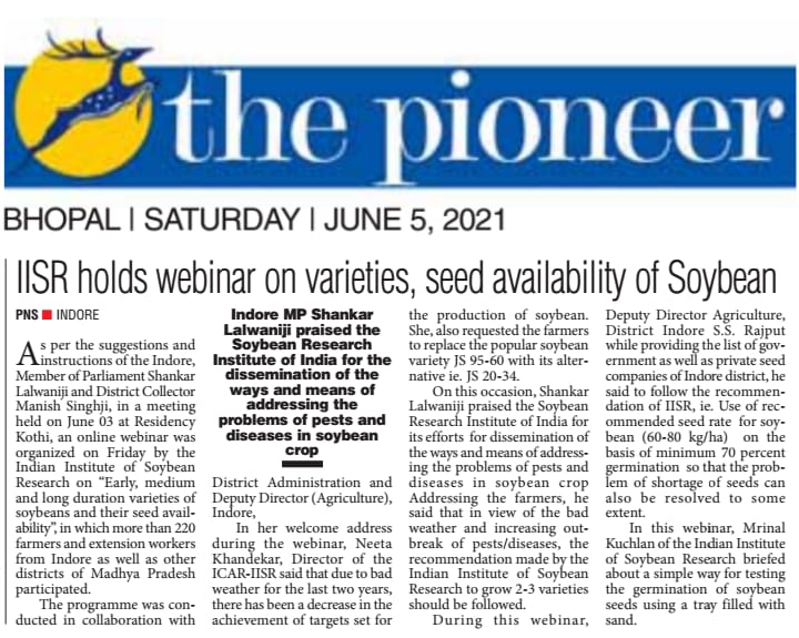 वेबिनार 31 मई 2021 "सोयाबीन की उच्च उत्पादन