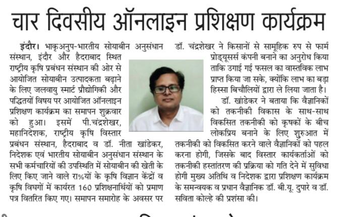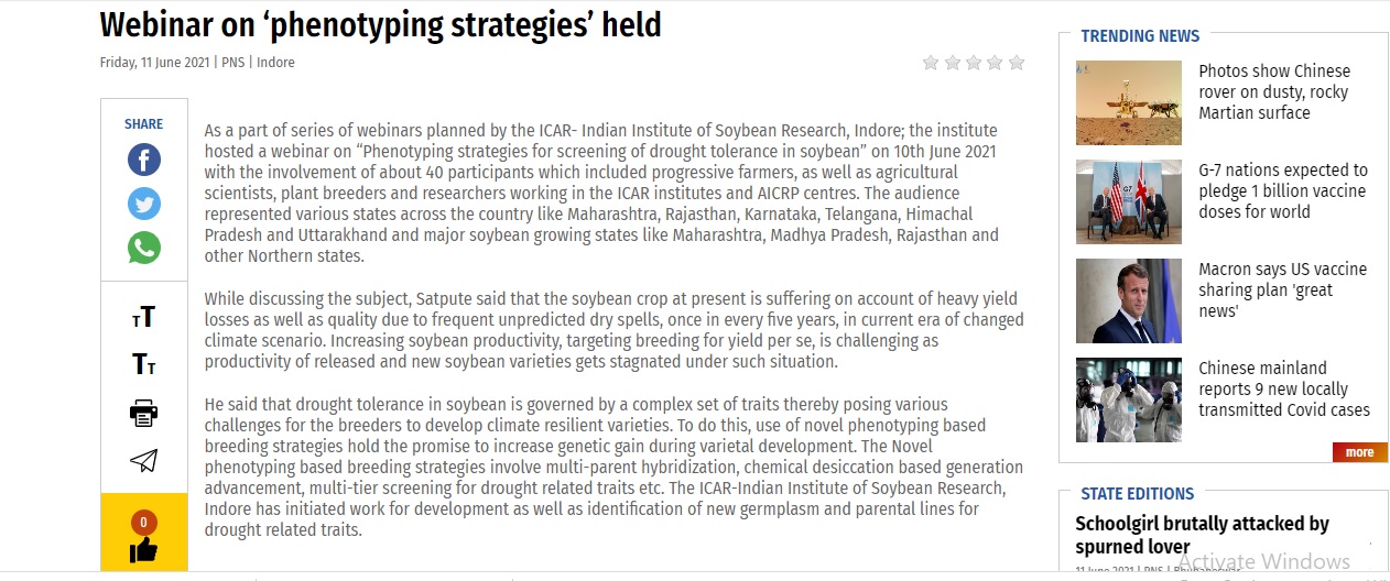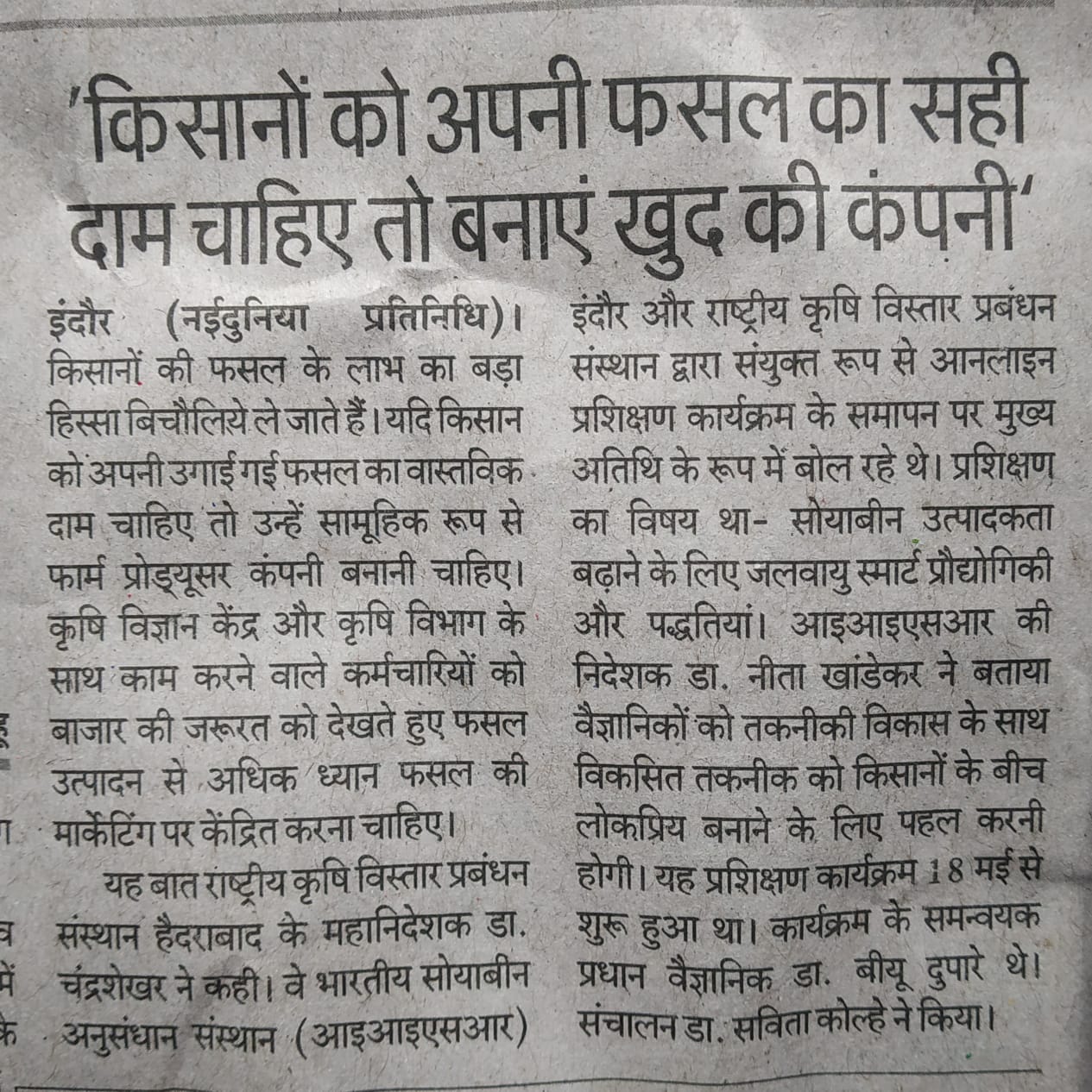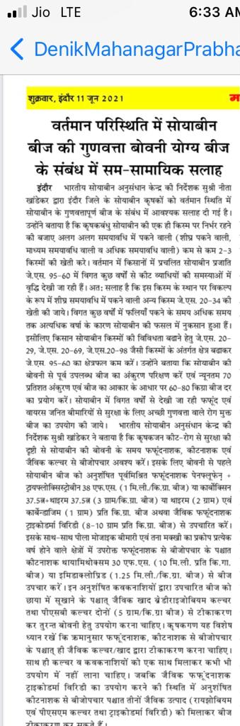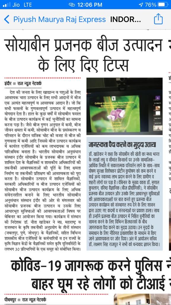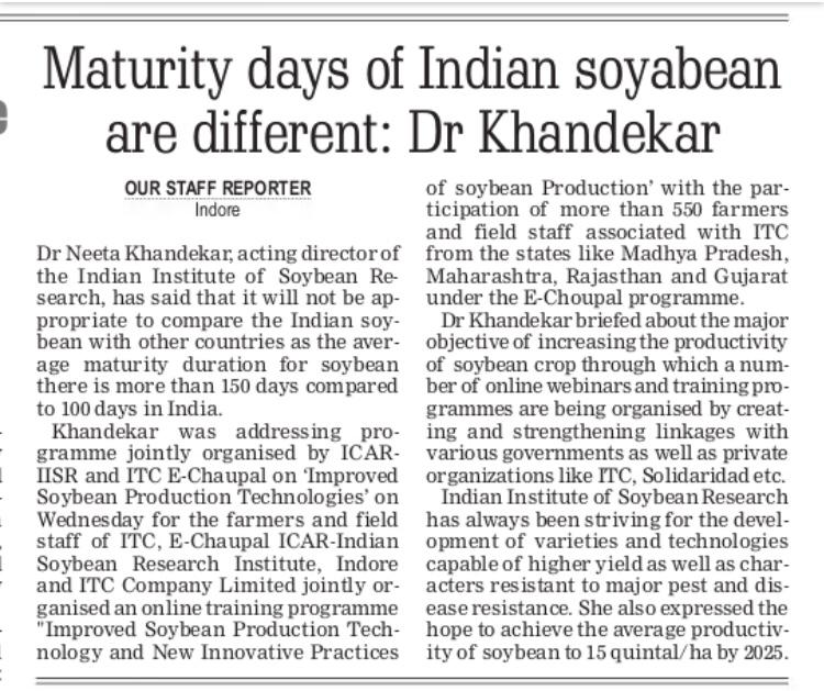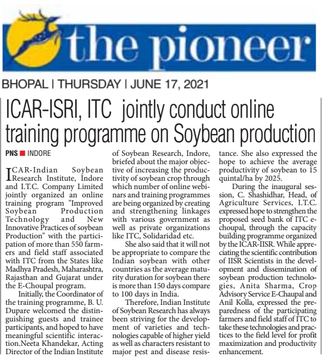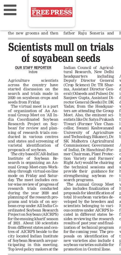 वेबिनार 31 मई 2021 "सोयाबीन की उच्च उत्पादन