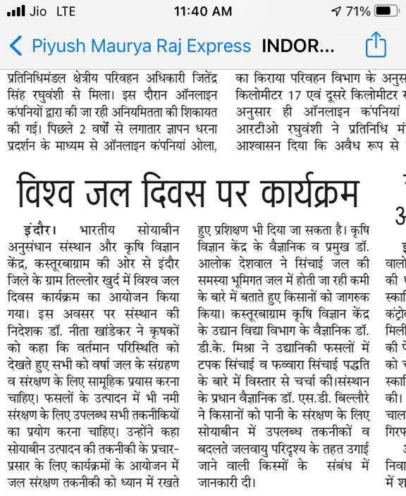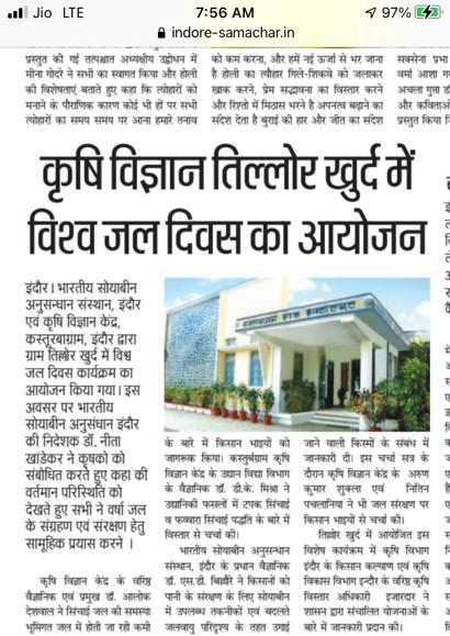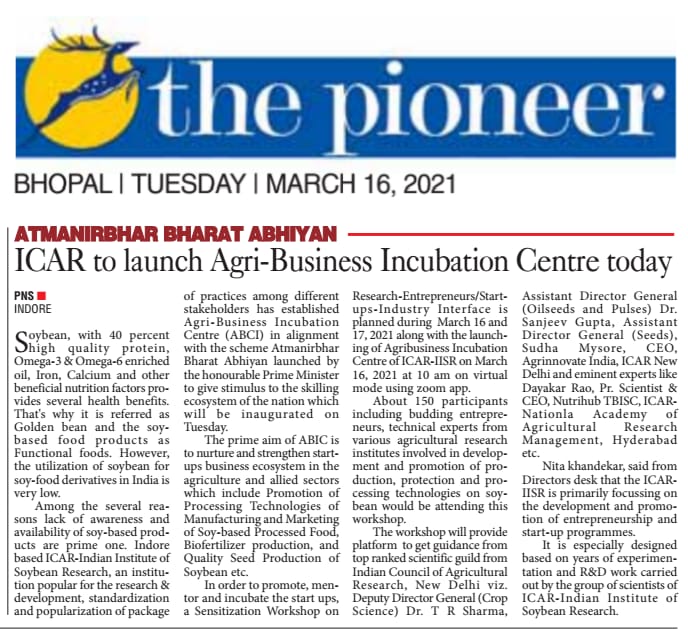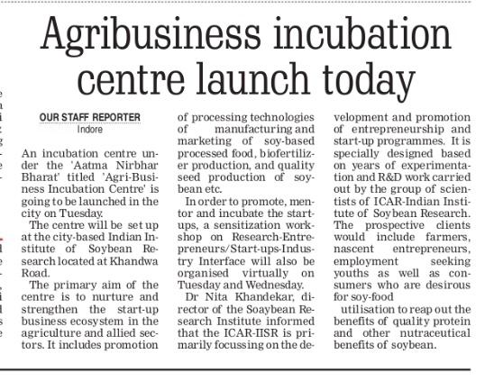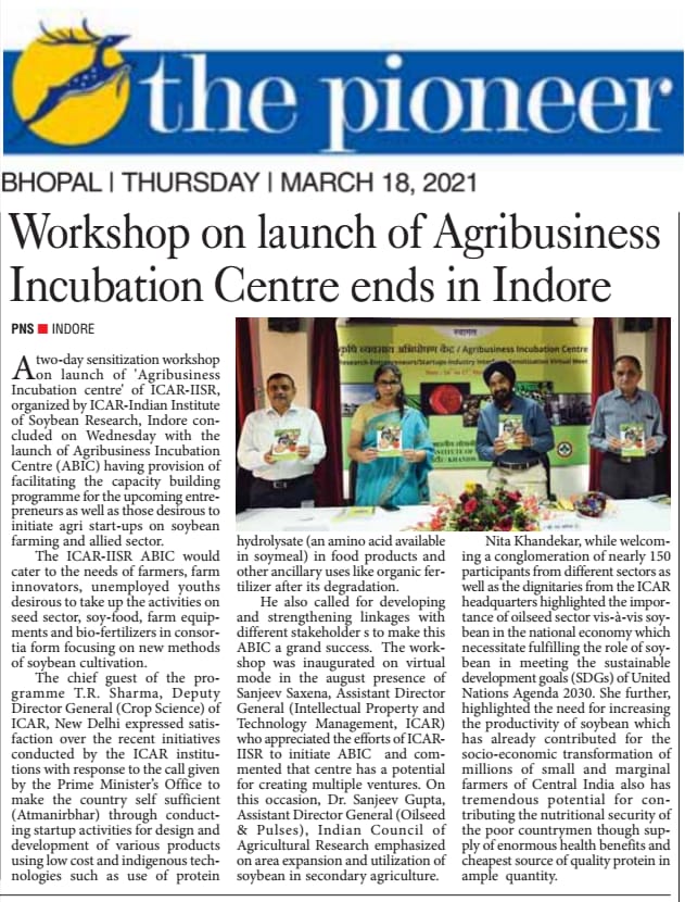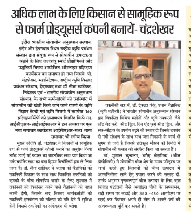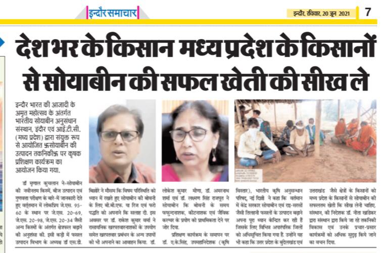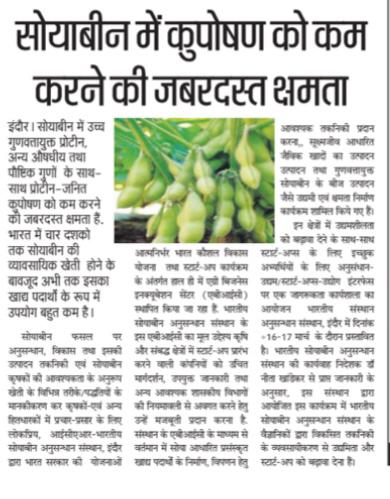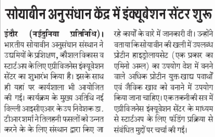 संस्थान ने स्कूली बच्चों के लिए "सोयाबीन क्षेत्र में उद्यमिता के अवसर" पर एक कार्यक्रम आयोजित किया