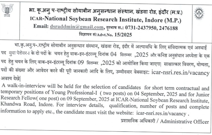 जूनियर रिसर्च फेलो- (I) (01) | 09 सितम्बर 2025 (10:30 AM onwards) | विवरण विज्ञापन रिजल्ट |